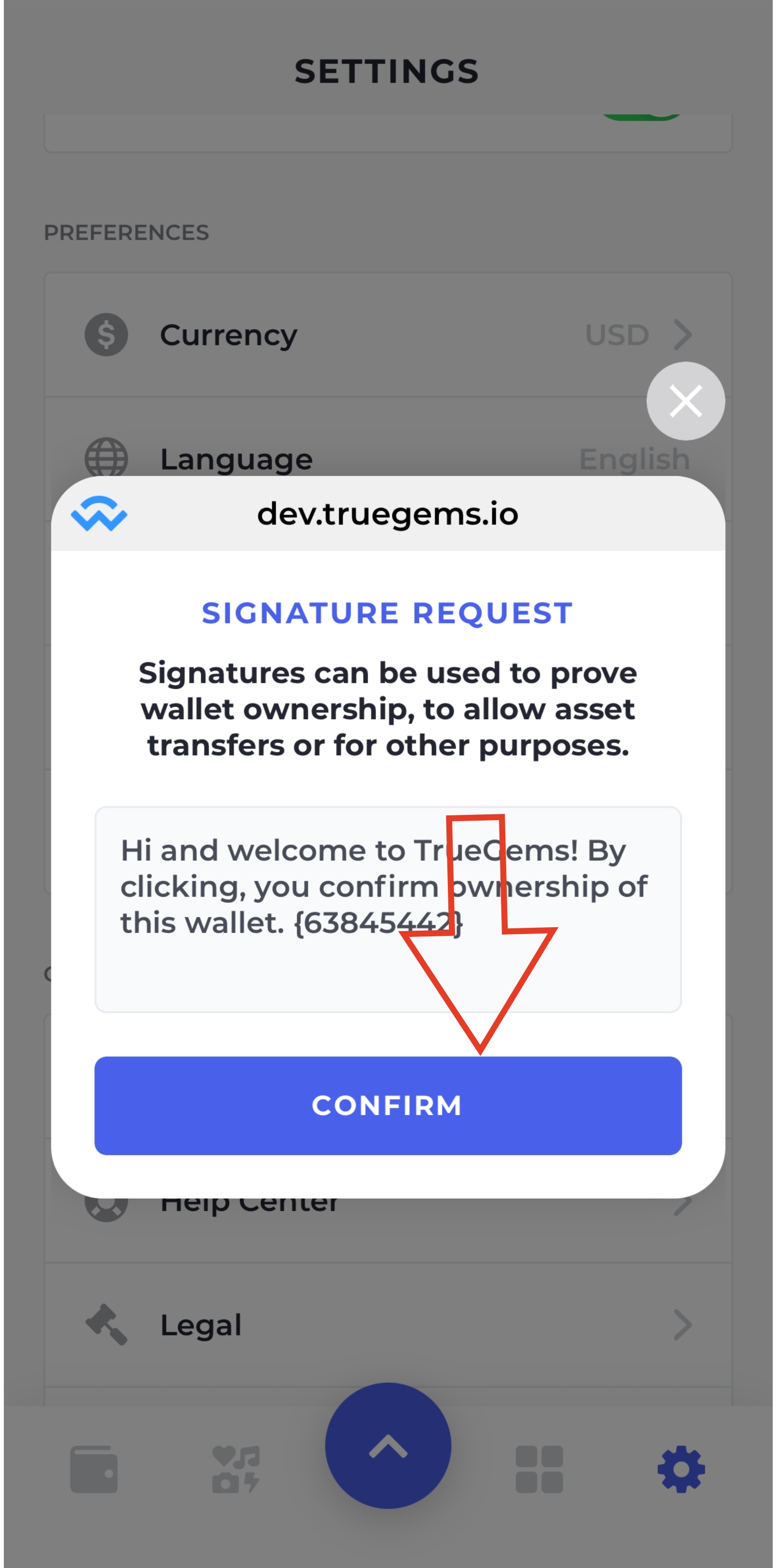 To mint your NFT, you need to connect your wallet. truegems is a Web3 platform, requiring you to connect your wallet to interact with it. We use WalletConnect, a tool designed to make digital ownership effortless, intuitive, and secure.