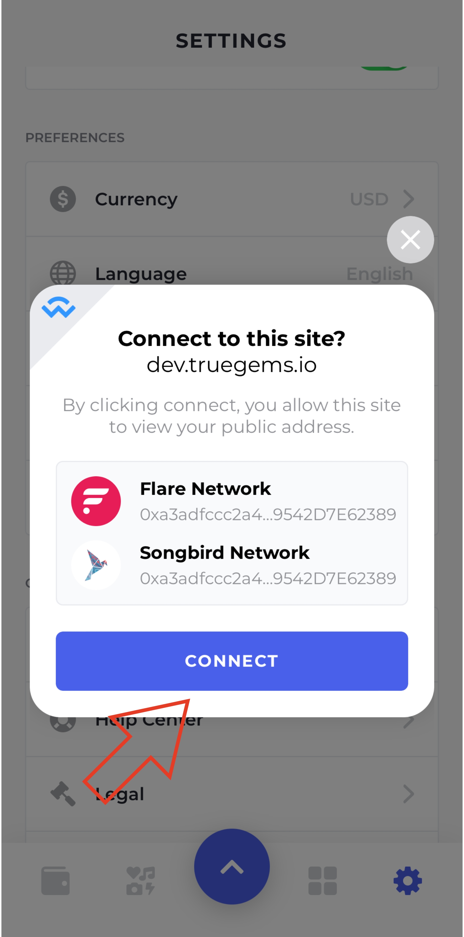 Once connected, truegems should display your FLR and WFLR balances and allow access to your profile.