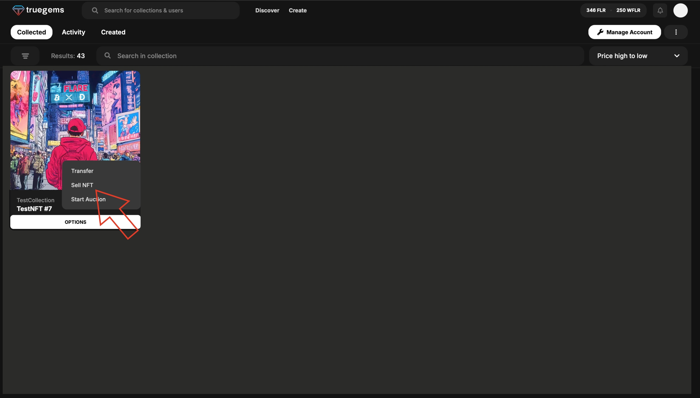 To sell your NFT on the truegems marketplace, click the "Sell NFT" button.