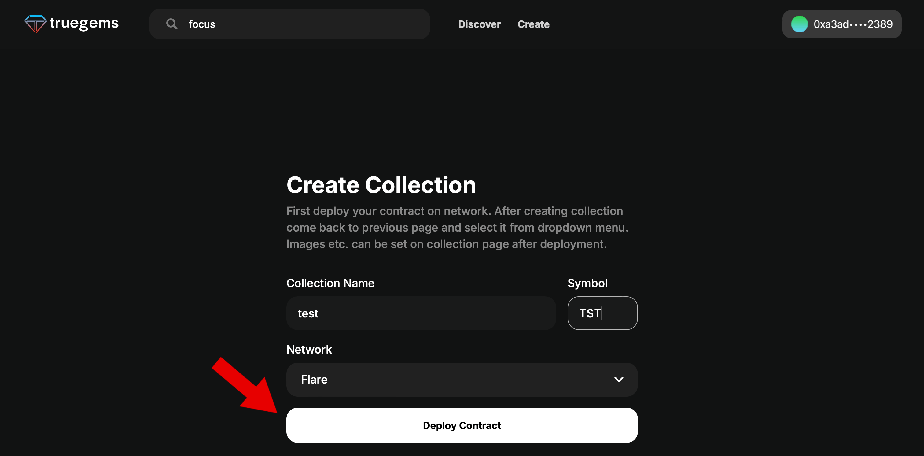 Choose the network where you want to mint your NFTs. Currently, only Flare and Songbird Networks are available, but we will introduce more EVM networks to the truegems NFT marketplace in the future.
